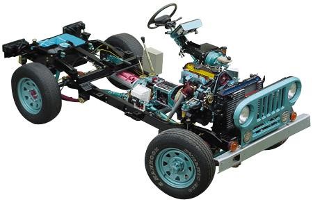 汽車實訓系統以翻新勇士2020(2.8T柴油四驅分體雙排3350軸距BJ2034HMT51手動擋)原廠汽車總成實物為基礎,解剖各系統關鍵部位,剖面涂不同顏色,突出結構層次,可對汽車各系統進行原理與結構展示。