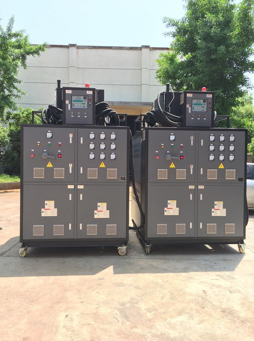 高溫油溫機就是以導熱油為傳熱媒介的模溫機。油溫機自身設有一個儲油箱,工作時導熱油由儲油箱進入系統,導熱油通過加熱器升溫,然后經循環泵打入到模具或其它需要控溫的設備,導熱油從控溫設備出來后,再返回到系統,周而復始。